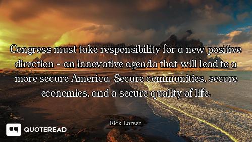 Positive Congress must take responsibility for a new positive direction - an innovative agenda that will lead to a more secure America. Secure communities,... Rick Larsen 0